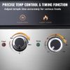 4.Precise Temp & Time Control: This commercial grill has adjustable temperature controls and timing function to ensure the food is perfectly cooked. The temperature's range from 0-446°F / 0-230°C.